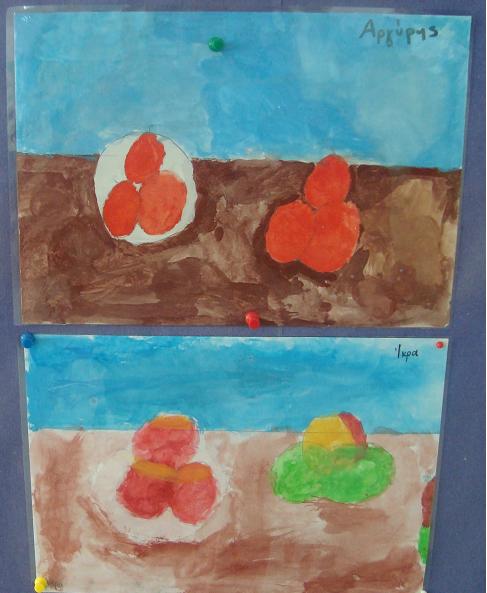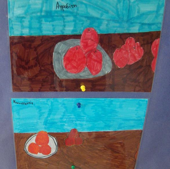 Παρατηρήσαμε, συζητήσαμε και προσπαθήσαμε να ζωγραφίσουμε κι εμείς κάποιους πίνακες με νεκρή φύση Ελλήνων και ξένων καλλιτεχνών. Αυτοί είναι οι: