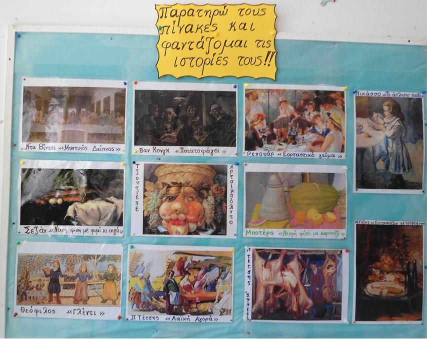 Τη φετινή σχολική χρονιά (2013-2014) σε συνέχεια του προγράμματος της προηγούμενης χρονιάς κάνουμε τη "Διατροφή και τέχνη", όπου βλέπουμε το θέμα της τροφής μέσα από: